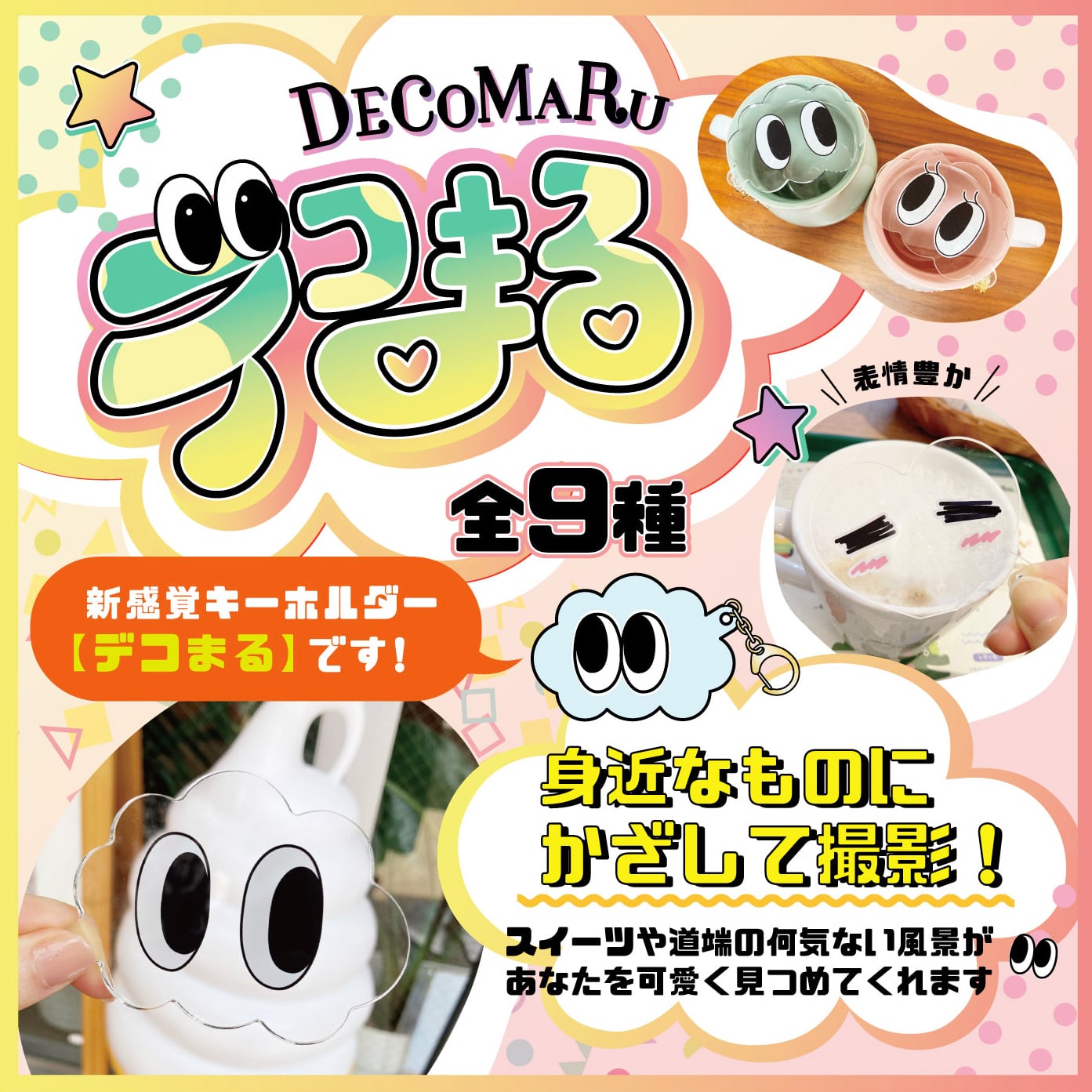 デコまるは、身近なものにかざして撮影するだけで、簡単におしゃれな写真が撮影できるアイテムです。愛らしいデザインとコンパクトさが魅力で、お気に入りの小物やお土産などにかざして、写真を撮影するだけで、SNS映えする写真を手軽に楽しむことができます。